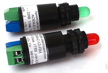 Индикаторная светодиодная арматура АКСМ требует минимума электроэнергии, разница с потреблением индикаторной панели с лампами накаливания составляет сотни процентов. Замена на светодиоды окупается уже через полгода работы оборудования.