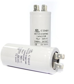 Пусковые конденсаторыНапример, для двигателей мощностью М=0,4 кВт Ср берется равной 40 мкф, Сп =80 мкф, а для двигателей с М=2,2 кВт емкости Ср и Сп соответственно равны 230 и 300 мкф.